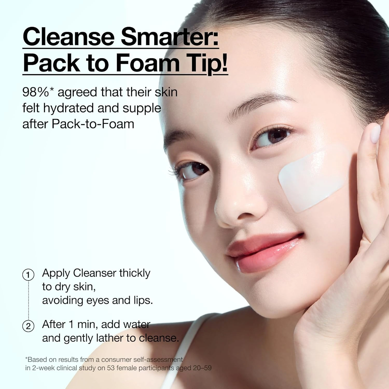 Can be used as a pack-to-foam for a quick boost of hydration during your cleansing routine.