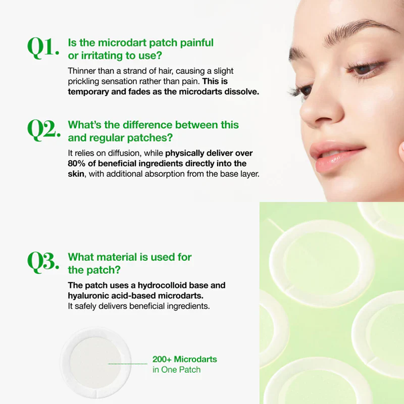 • A 0.3mm patch that adheres seamlessly on skin with more than 200 microdarts.