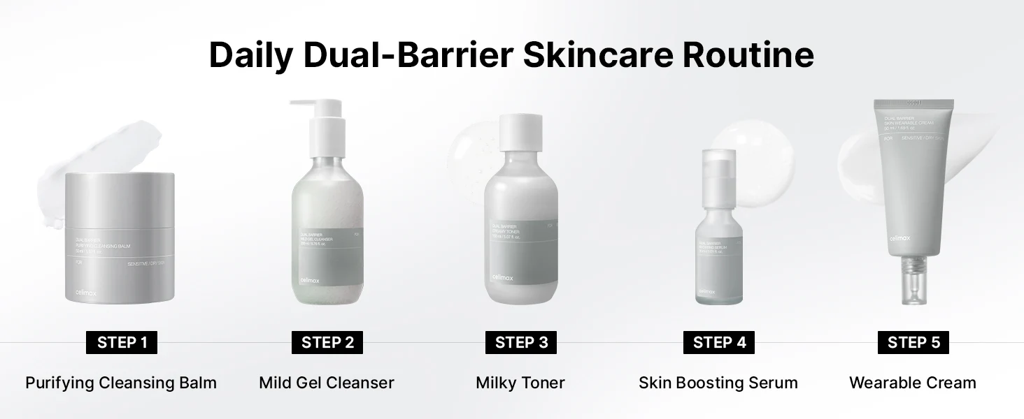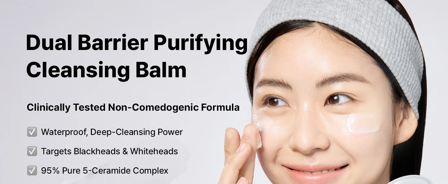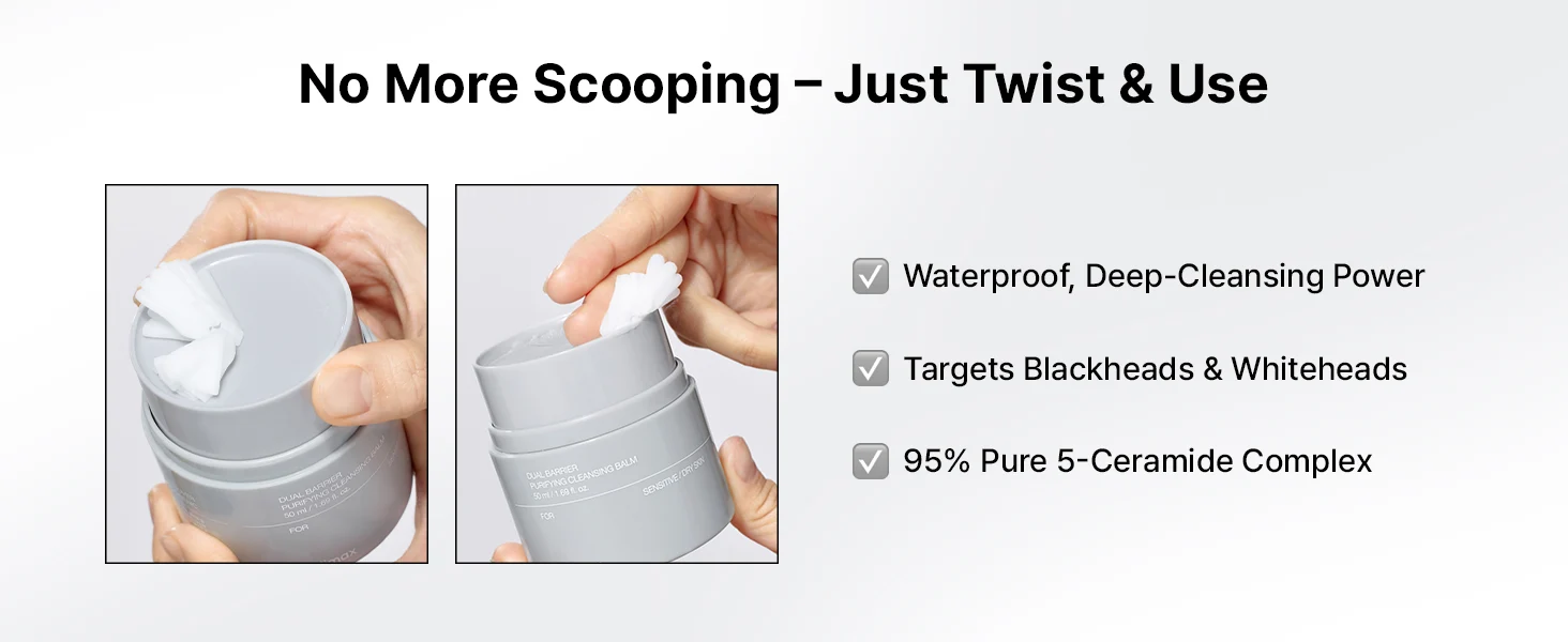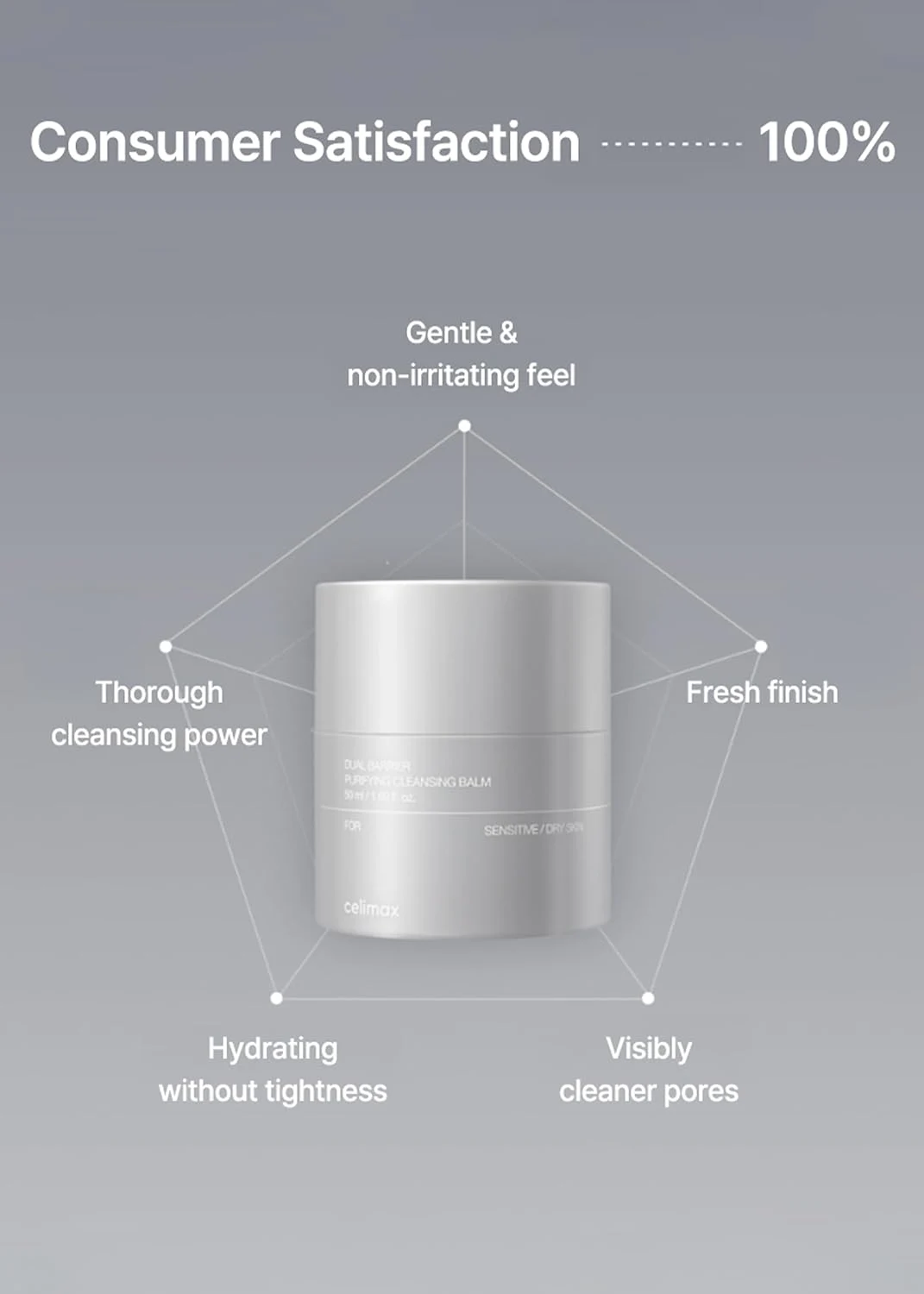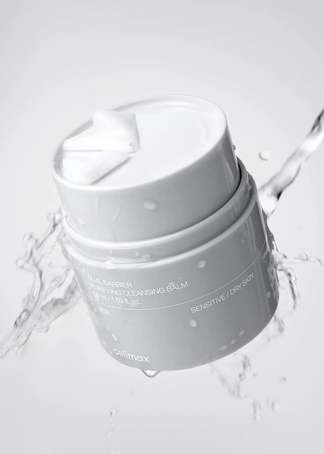 celimax Dual Barrier Purifying Cleansing Balm is an innovative grinder-type cleansing balm made for easy, hygienic cleansing. It has a 3-step transforming texture (balm → oil → milk) to melt makeup and sunscreen, then rinse clean without leaving skin feeling tight.
