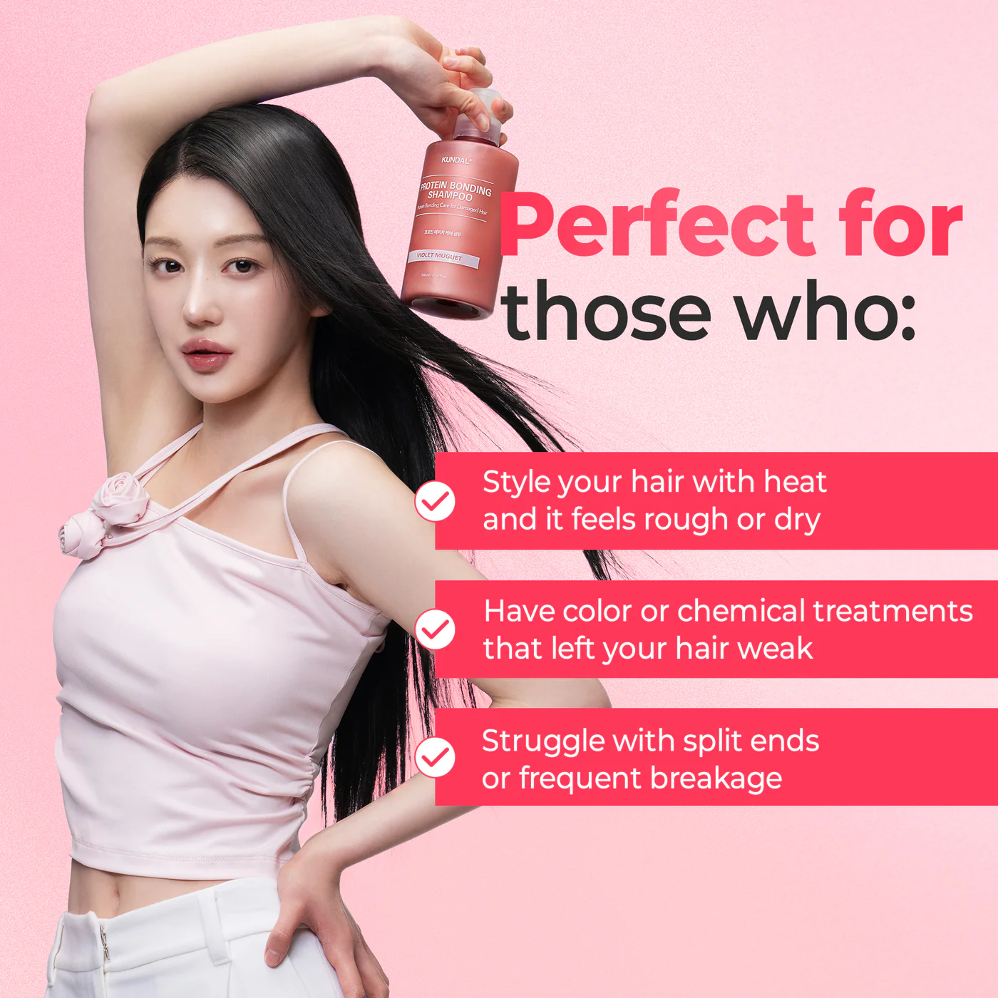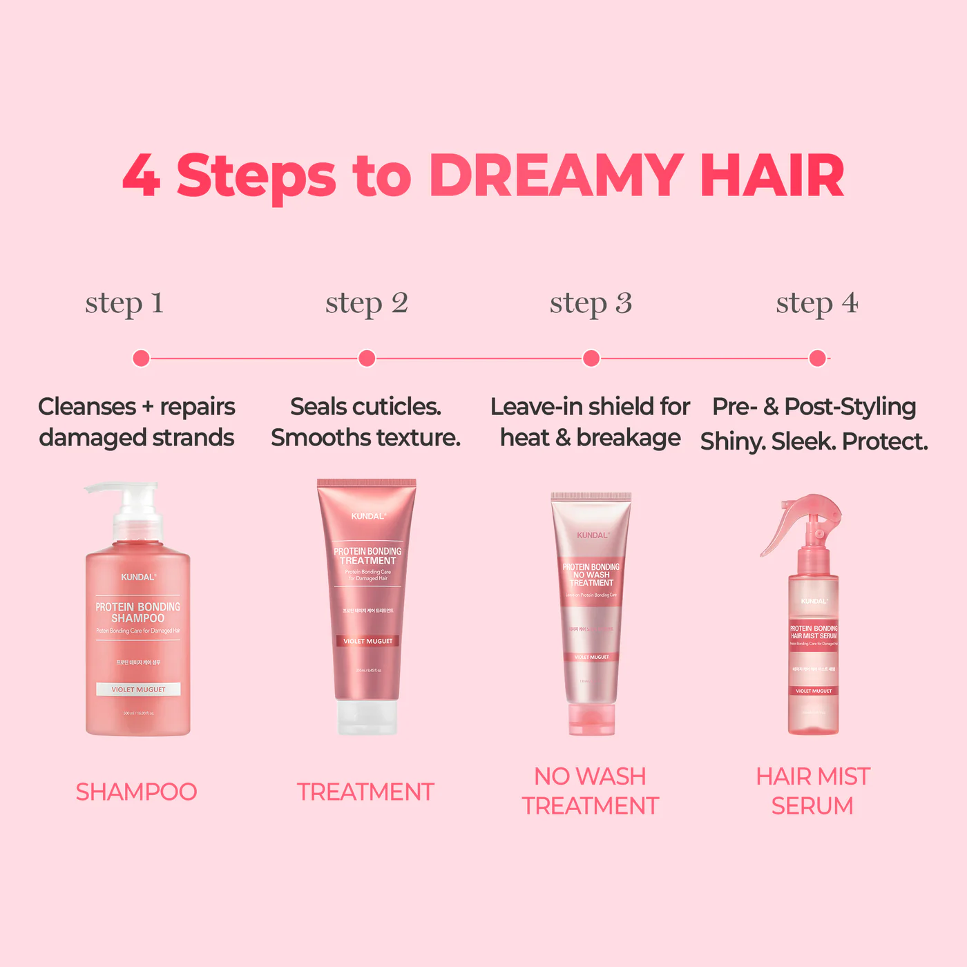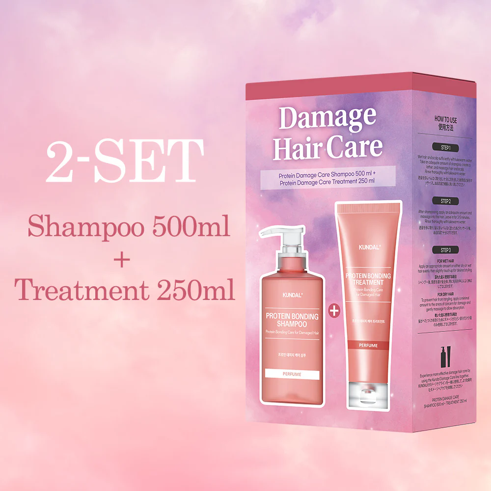 KUNDAL Protein Bonding SET (Shampoo 500ml + Treatment 250ml) – Violet Muguet is a Korean haircare duo made for damaged, dry, or rough hair that needs stronger-looking strands, smoother cuticles, and salon-like shine. It’s built around KUNDAL’s “bonding” concept: helping hair feel more resilient by filling moisture gaps and improving the look and feel of damaged hair.
