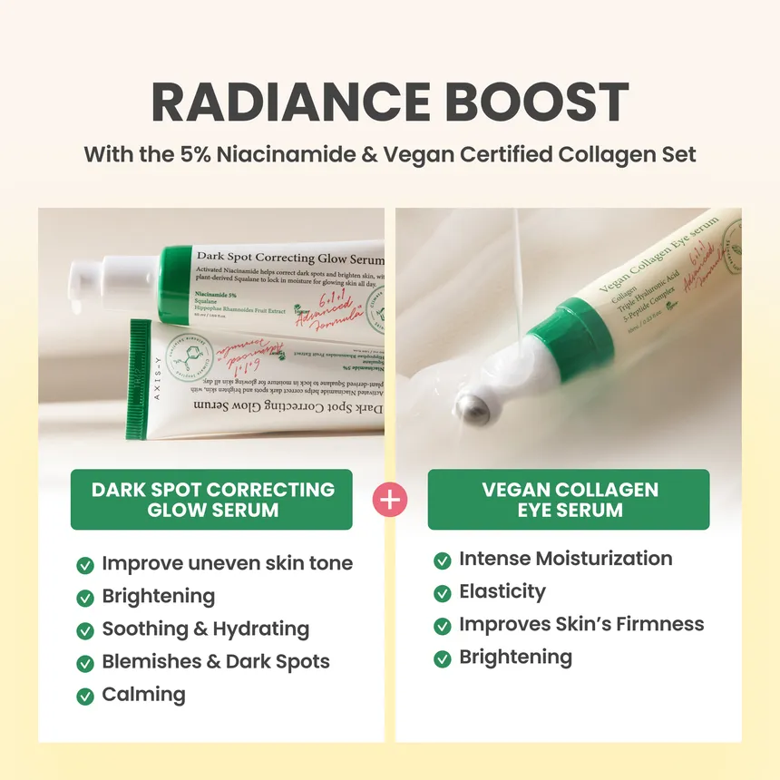 Glow & Hydration Duo წარმოადგენს AXIS-Y-ის ორ ყველაზე გაყიდვად იდეალურ კომბინაციას, რომელიც შექმნილია კანის გასანათებლად, დასატენიანებლად და აღსადგენად, რათა შესძინოს მას ბუნებრივად კაშკაშა, თანაბარი ფერი.