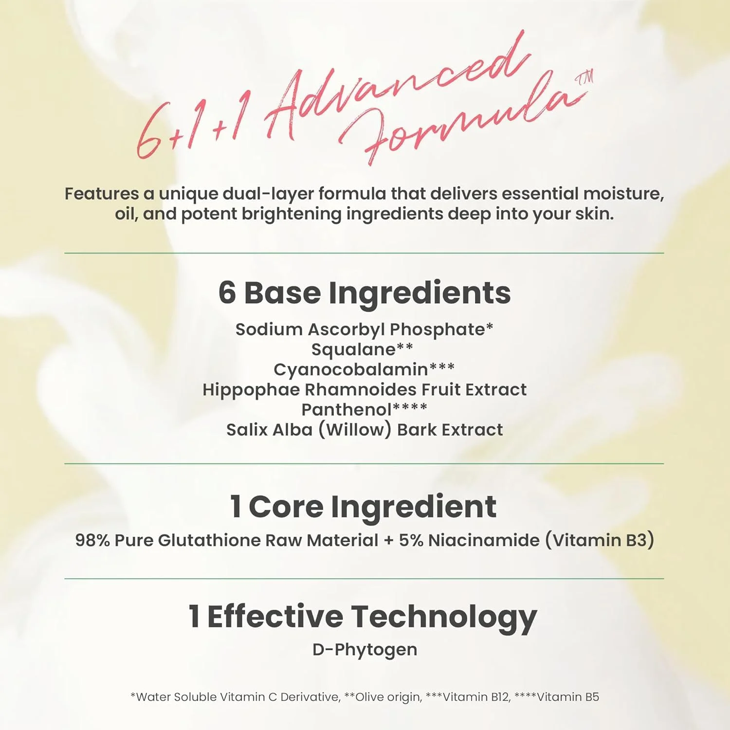 შეიცავს ვიტამინ B5-სა და B12-ს კანის დასატენიანებლად.