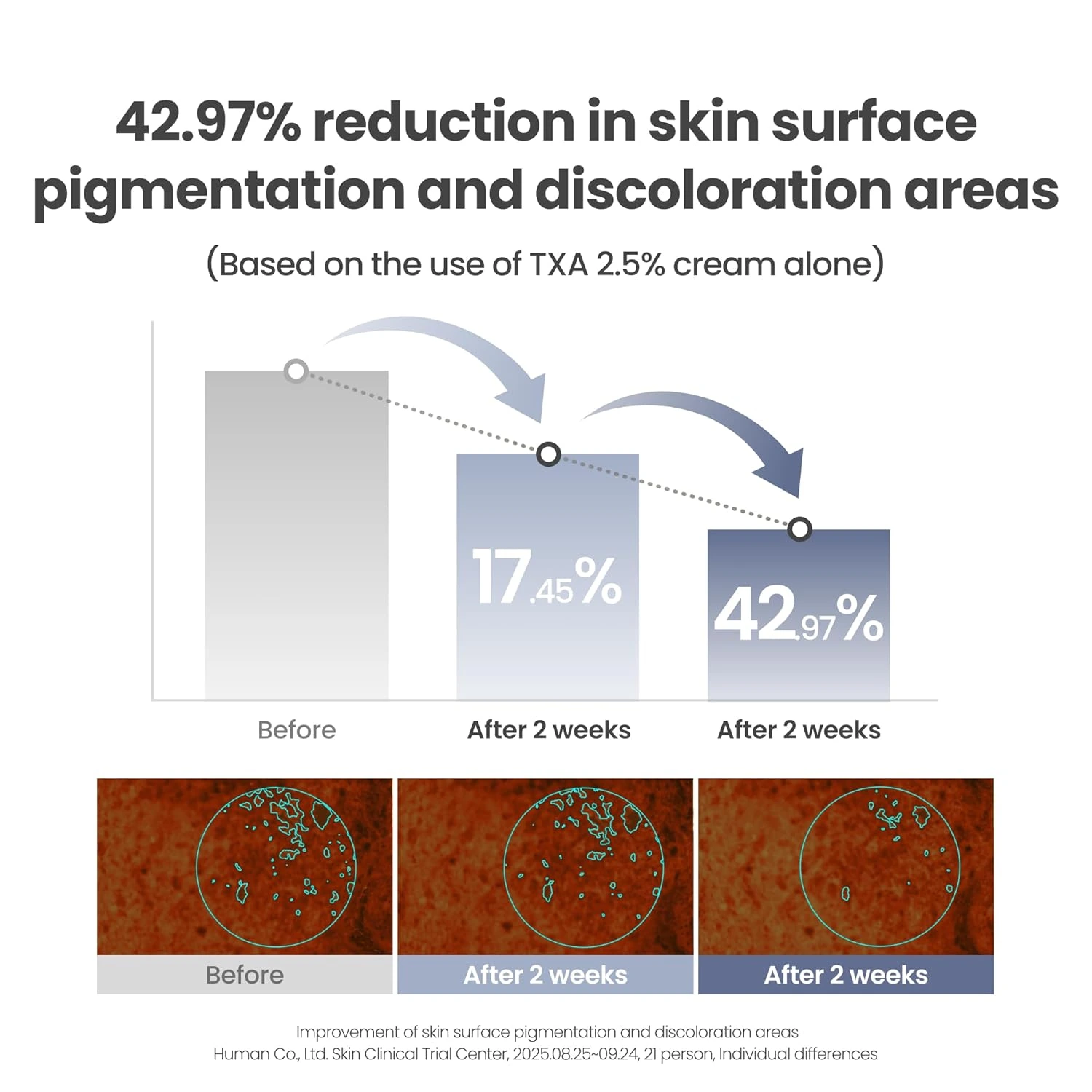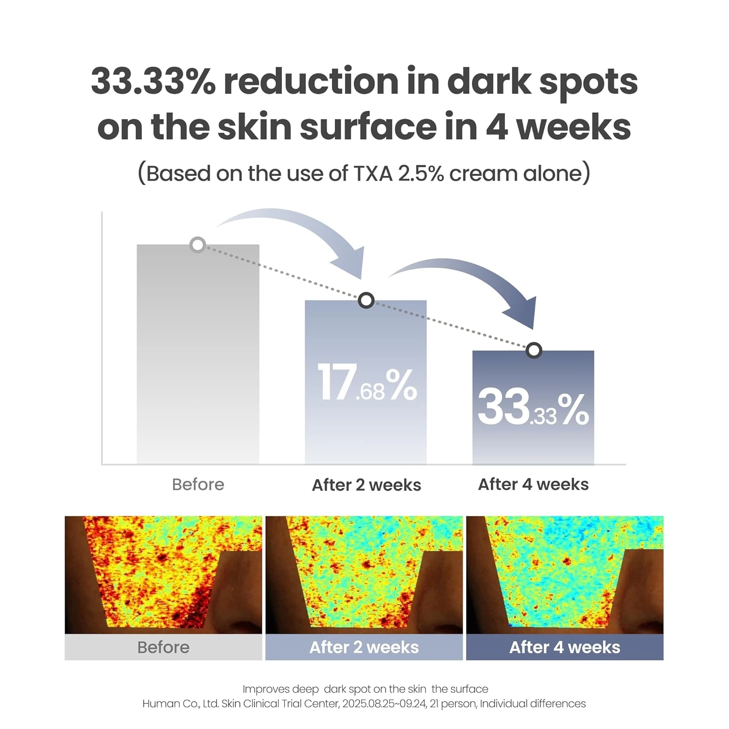 ტრანექსამის მჟავის, ნიაცინამიდის და გლუტათიონის ძლიერი ნაზავი აქრობს მუქ ლაქებს, აღიავებს კანის ტონს და აძლიერებს კანის ბარიერს.