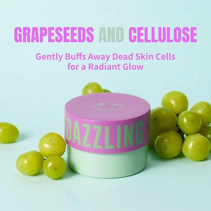 სუფთა ინგრედიენტები: გამდიდრებულია ბუნებით მიღებული დაფქული ყურძნის წიპწებით, ცელულოზით, Melia Azadirachta-ს ფოთლის ექსტრაქტით, Pancratium Maritimum-ით და სხვა ინგრედიენტებით, Dazzling სხეულის სკრაბი ხელს უშლის მკვდარი კანის უჯრედების ჭარბ დაგროვებას. არ შეიცავს პარაბენებს და ფტალატებს.