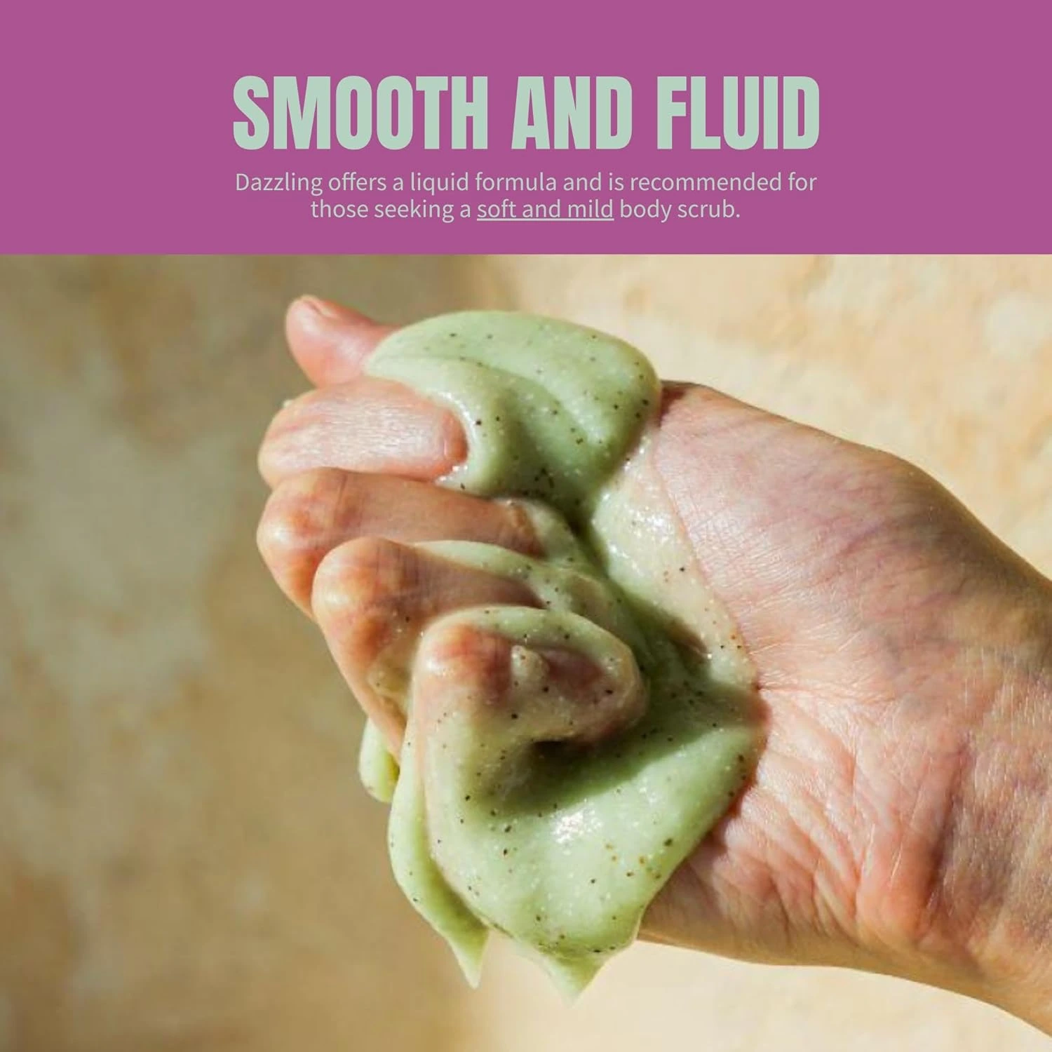 რეკომენდებულია: მათთვის, ვინც ცხოვრობს ნოტიო კლიმატურ პირობებში ან აქვს მგრძნობიარე კანი, რომელიც აწუხებს მკვდარი კანის უჯრედებისგან გამოწვეულ ფერმკრთალ იდაყვებსა და მუხლებზე. Dazzling სხეულის სკრაბი უზრუნველყოფს გლუვ, თხევად ფორმულას, რომელიც იდეალურია მათთვის, ვისაც სურს რბილი და ნაზი, ჰიპოალერგიული სკრაბი.