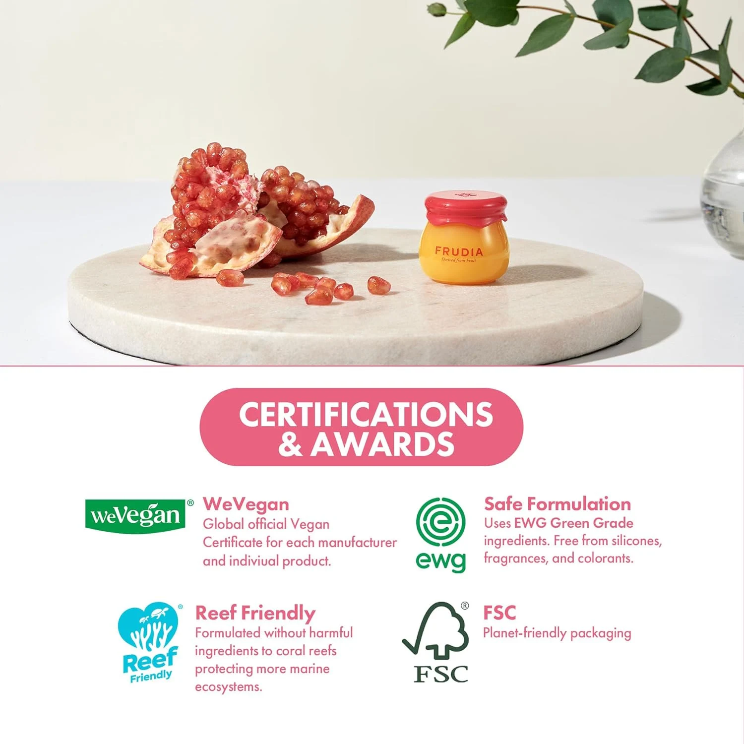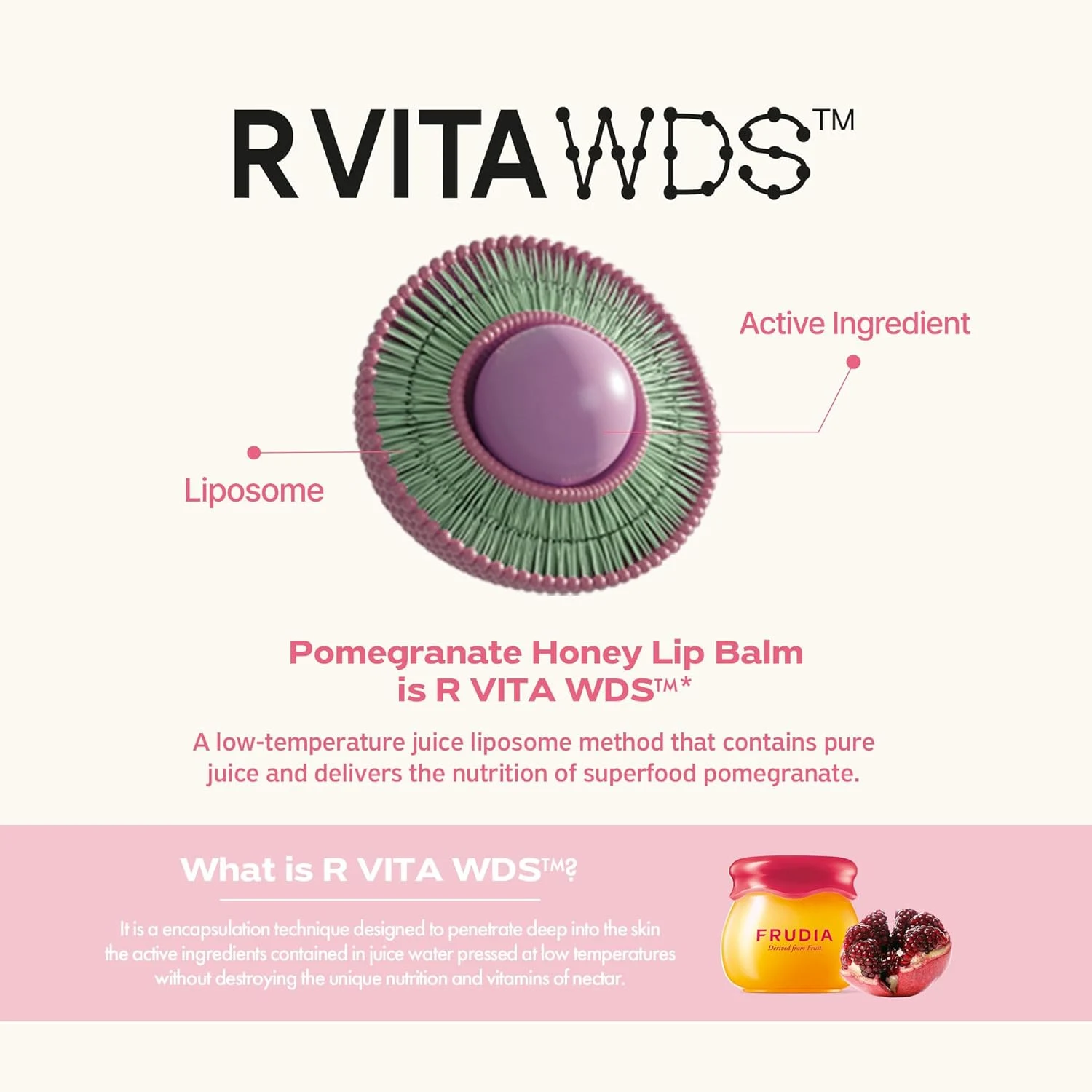 Frudia ბროწეულისა და თაფლის 3-1 ტუჩის ბალმი (10 მლ)- კორეული მურაბის ტექსტურის ტუჩის ბალმი, რომელიც მოქმედებს როგორც დამატენიანებელი ბალმი, გამადიდებელი საშუალება და მსუბუქი ელფერი – იდეალურია ყოველდღიური მოვლისთვის, ტუჩების პომადის წასმამდე მოსამზადებლად ან პრიალა დასასრულისთვის. ის შექმნილია მშრალი ან თხელი ტუჩების დასატენიანებლად, სიგლუვისა და ოდნავი მოცულობის მისაცემად, ბუნებრივი ვარდისფერი ფერითა და სიახლის შეგრძნებით.