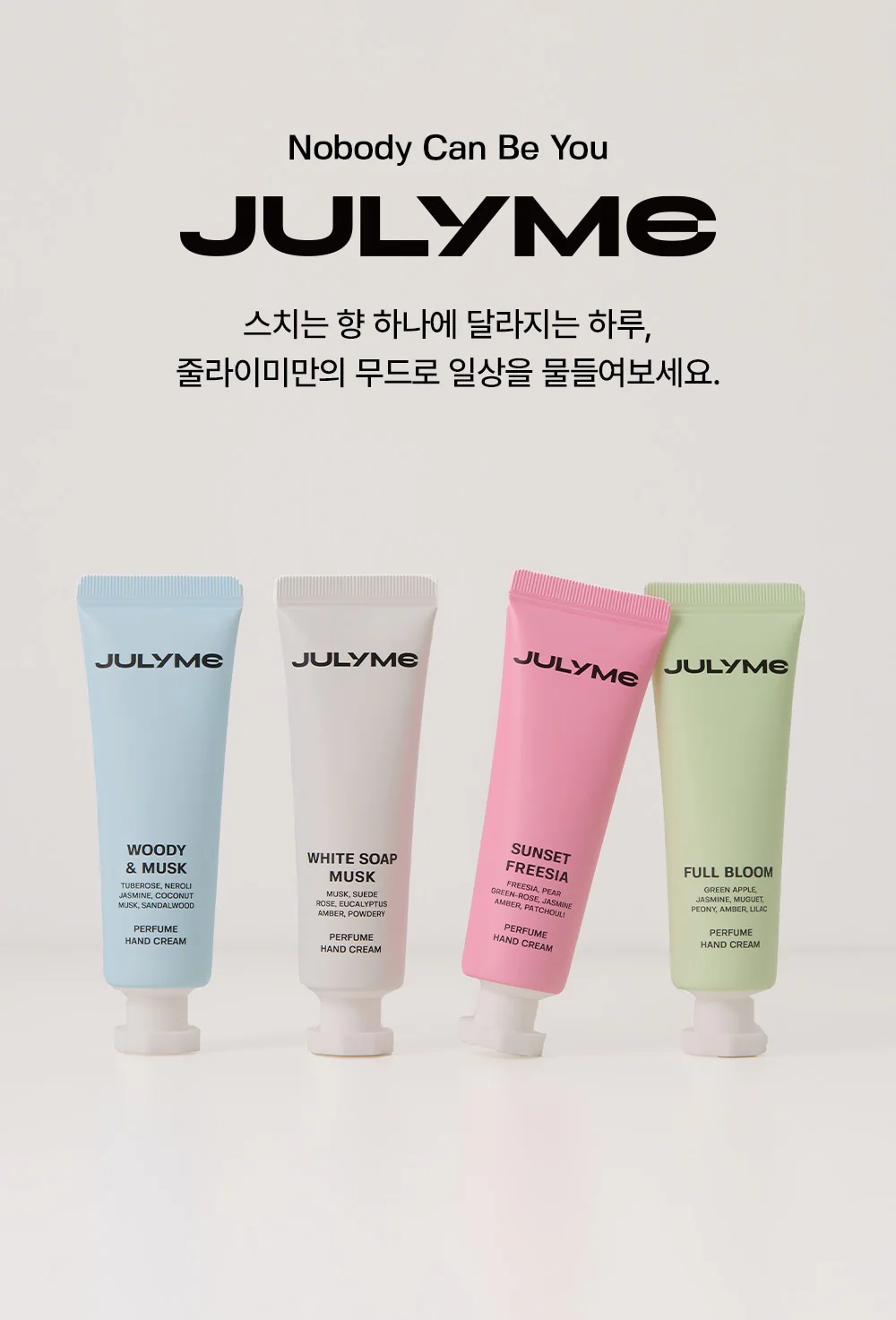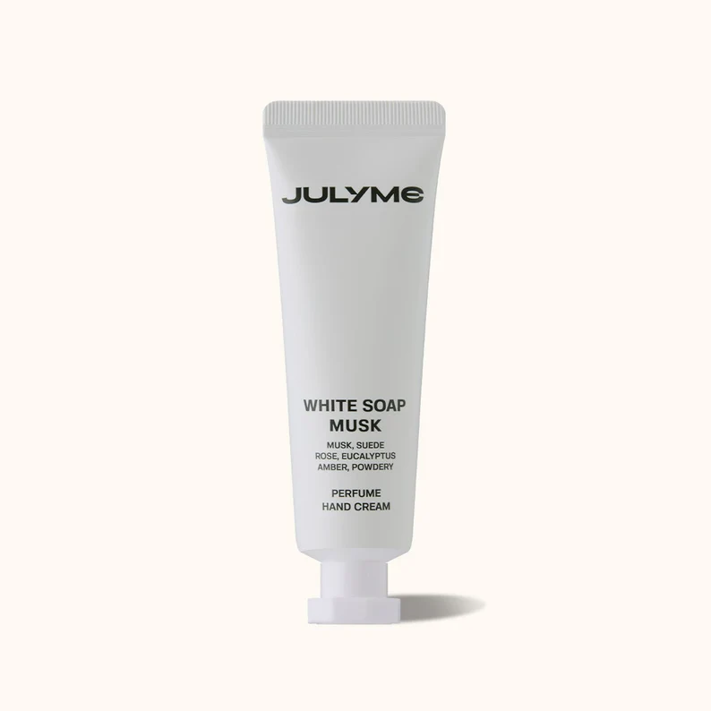 JULYME-ის სუნამო ხელის კრემი (30 მლ) – თეთრი საპონი და მუშკი იგივე დამატენიანებელი კორეული ხელის კრემის ფორმულაა, რაც JULYME-ის სხვა სუნამოებს, უბრალოდ განსხვავებული არომატით. ის შექმნილია მშრალი, უხეში ხელებისთვის და ანიჭებს კანს სირბილეს, მკვებავ იერს, ასევე სუფთა, ხანგრძლივად მდგრად სურნელოვან ხელის კრემის სურნელს, რომლის ხელახლა წასმაც დღის განმავლობაში შეგიძლიათ.