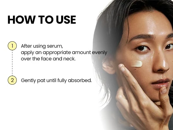 1) გაწმენდისა და ტონერის გამოყენების შემდეგ, წაისვით მცირე რაოდენობა სახეზე (მოერიდეთ თვალისა და ტუჩის არეს).