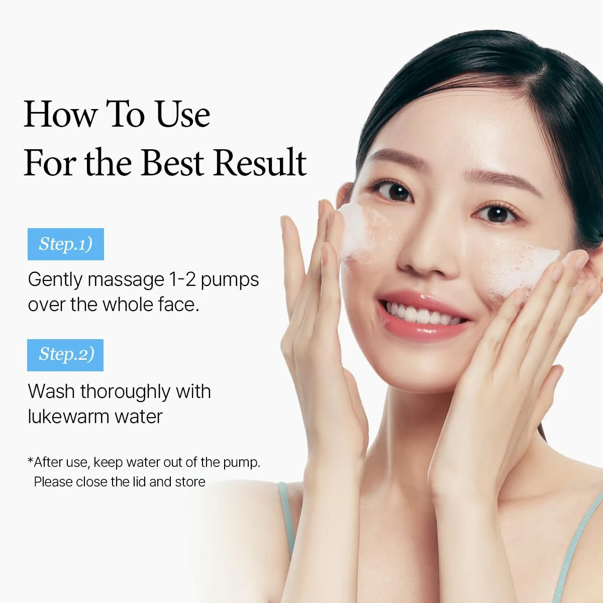 2) შეიზილეთ 1-2-ჯერ ხელებზე და ნაზად შეიზილეთ სახეზე (მოერიდეთ თვალებთან კონტაქტს).